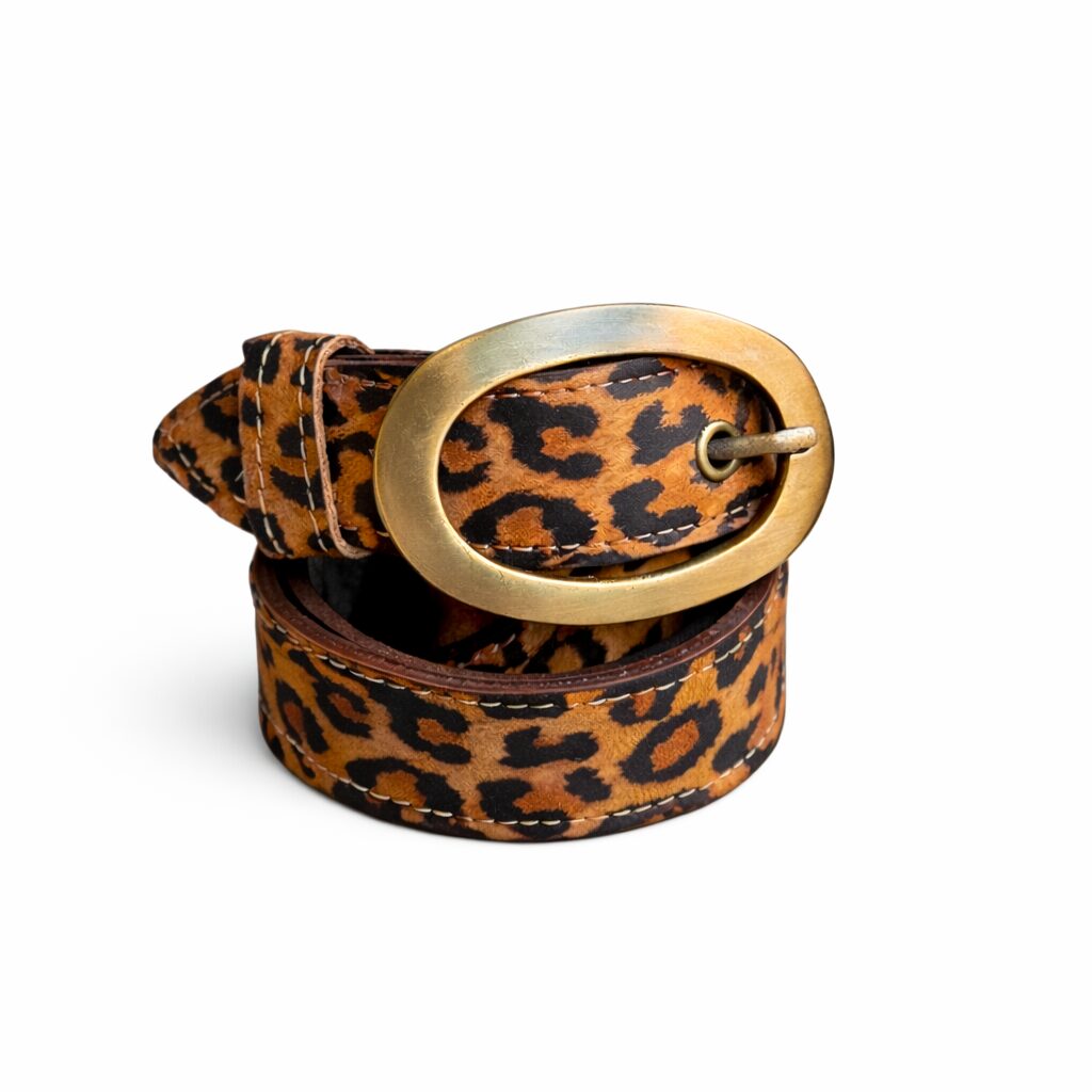 Cinturón doble cuero De Flor con Hebilla Ovalada En tono Dorado Las medidas son de Hebilla a punta