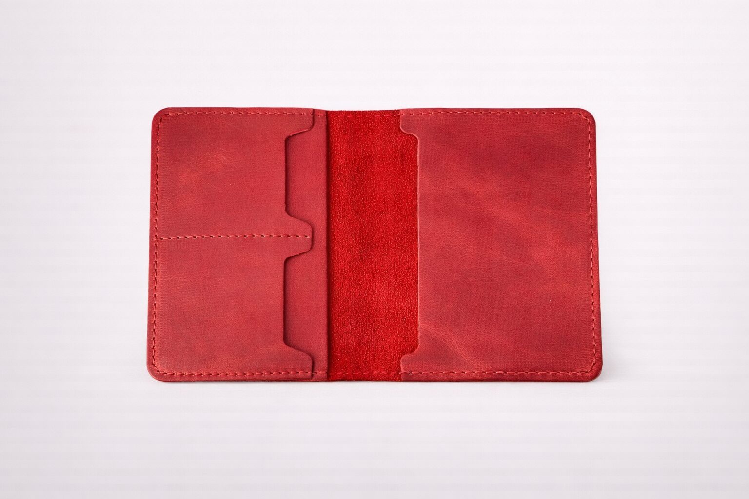 Porta Pasaporte 100% cuero Natural, Hecho a mano. Dos compartimientos grandes para Pasaporte y documentos y dos espacios para tarjetas.