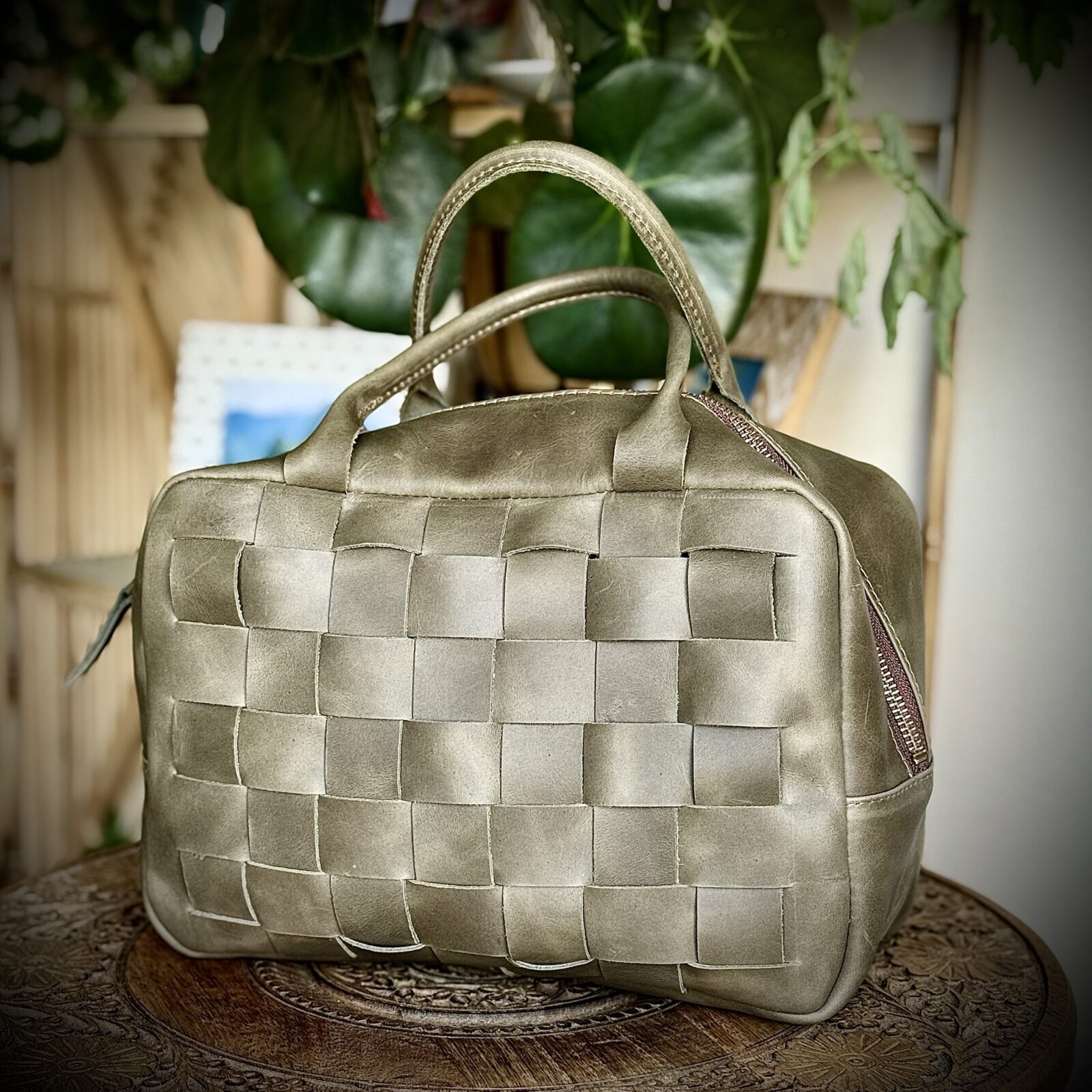 Cada tira de cuero a sido entrelazada a mano, evocando los oficios del norte de Italia y reinterpretando la herencia artesanal desde el sur del mundo.